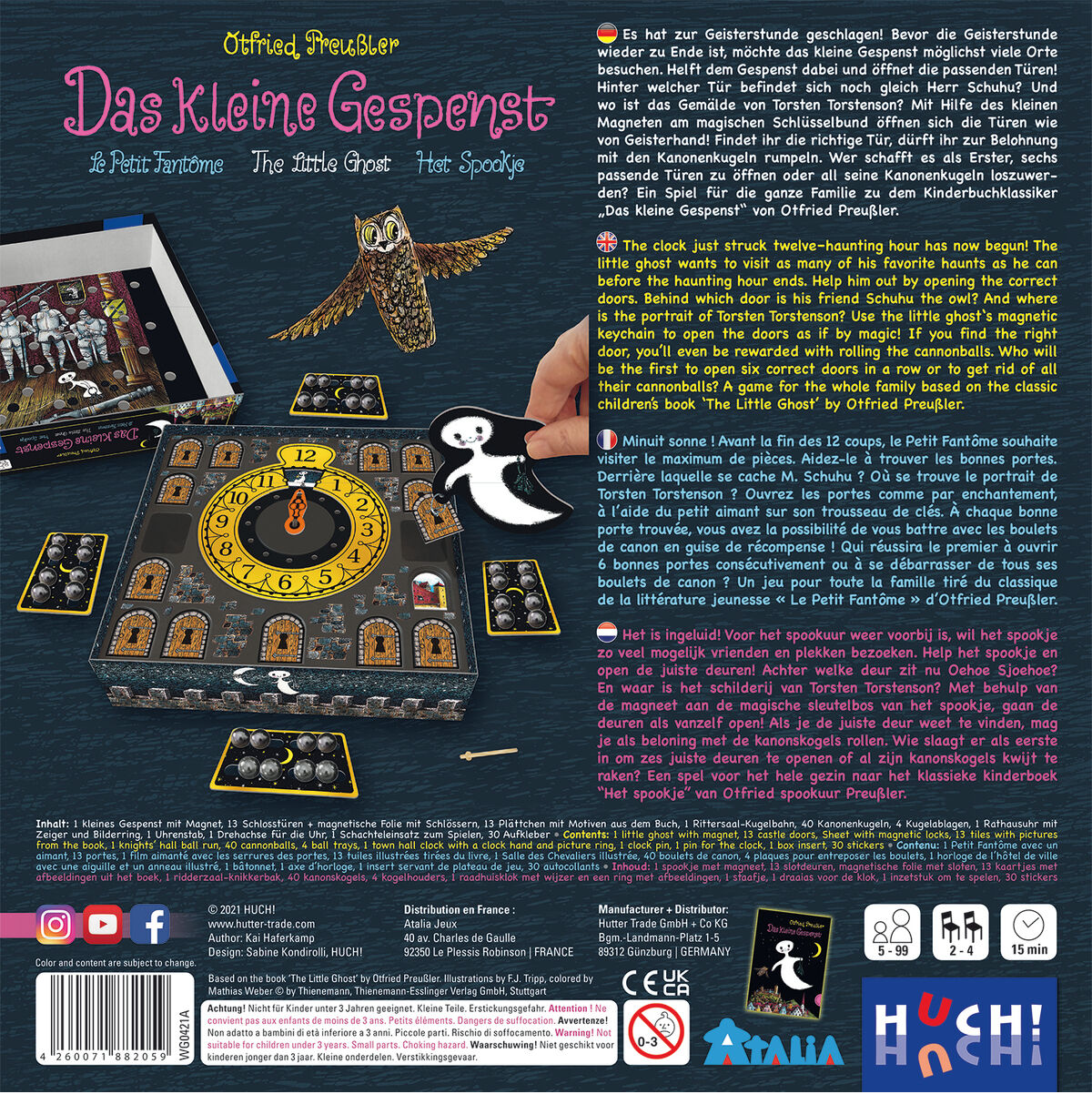 Erleben Sie gemeinsam mit Ihren Kindern die zauberhafte Welt des kleinen Gespensts, inspiriert vom beliebten Kinderbuchklassiker von Otfried Preußler. In diesem liebevoll gestalteten Brettspiel beginnt die Geisterstunde, und das kleine Gespenst macht sich mit viel Neugier auf den Weg durch das alte Schloss. Ziel ist es, so viele Freunde wie möglich zu besuchen, doch die geheimnisvollen Türen sind verschlossen und können nur mit einer Prise Magie sowie einem raffinierten Magneten geöffnet werden.