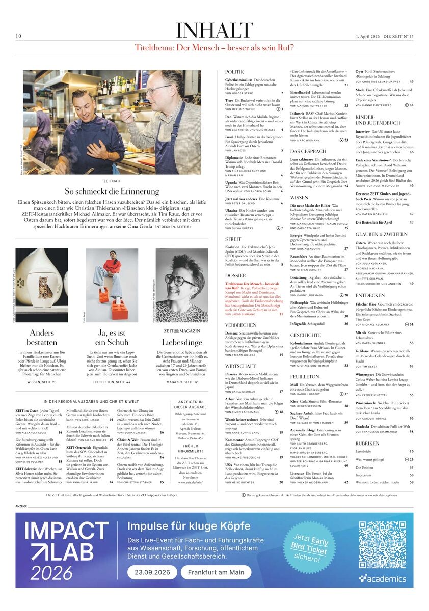 Titelthema ZEIT: Der Mensch. Besser als sein Ruf?