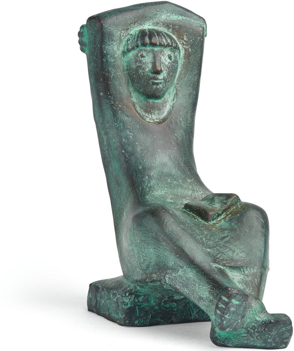 Mit seiner Skulptur »Lesefreuden« verewigt Gerhard Brandes einen Moment der Ruhe und Konzentration. Im traditionellen Wachsausschmelzverfahren gegossen, wird jede Skulptur von Hand ziseliert, poliert und grün patiniert.