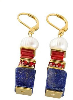 Das handgefertigte Set, bestehend aus Collier, Armband und Ohrhängern zitiert die vielleicht bekannteste Liebesgeschichte der Welt – Shakespeares Romeo & Julia. Rote Korallen treffen auf golddurchzogenen Lapislazuli sowie vergoldetes Messing und werden stilvoll von echten Zuchtperlen ergänzt.