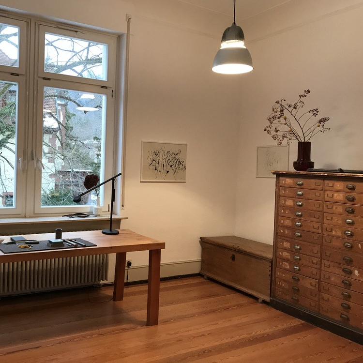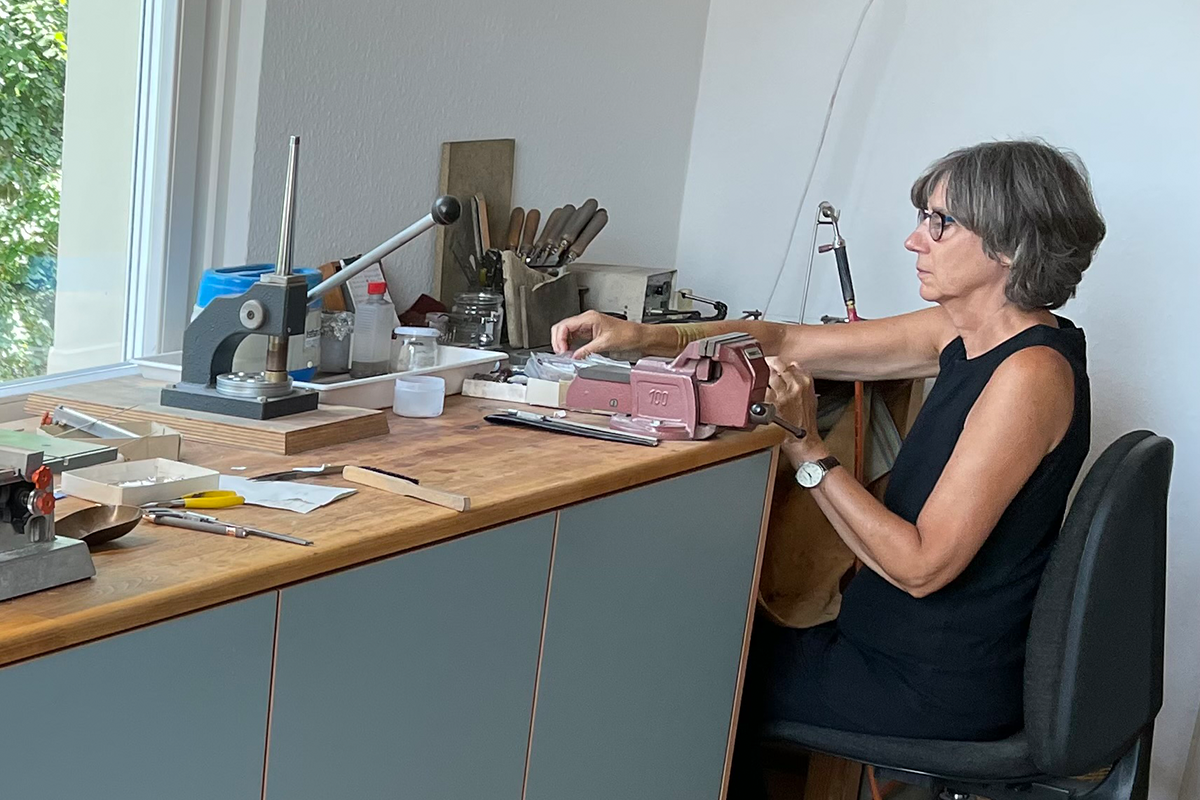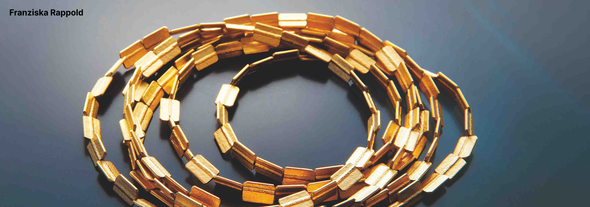 Jedes Schmuckstück von Franziska Rappold wird in kleinen Serien sorgfältig von Hand gefertigt. Ihr Anspruch: Schmuck, der unkompliziert ist, variabel getragen werden kann und dabei immer durchdacht und hochwertig bleibt. Die Entwürfe sind bewusst zurückhaltend gestaltet – so bekommen Form, Material und Trägerin Raum zur Entfaltung. Diese gestalterische Klarheit, gepaart mit handwerklicher Präzision, hat Franziska Rappold zahlreiche Auszeichnungen eingebracht, darunter den Hessischen Staatspreis für das Deutsche Kunsthandwerk.