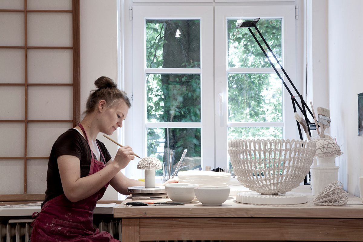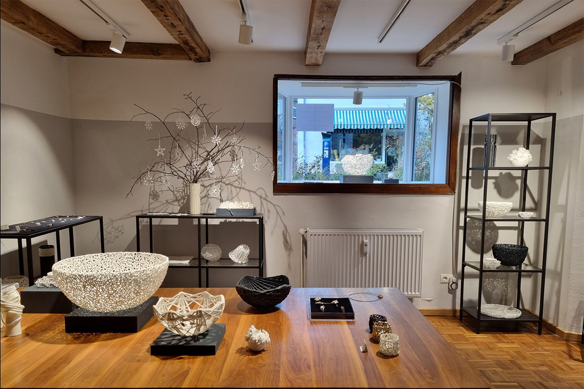 Ein besonderes Markenzeichen ihrer Arbeit ist das sogenannte Kordelporzellan – eine von ihr entwickelte Technik, die jedem Stück einen unverwechselbaren Charakter verleiht. Die Produkte sind nicht nur ästhetisch anspruchsvoll, sondern auch für den alltäglichen Gebrauch bestimmt: Sie laden dazu ein, Kunst mit allen Sinnen zu erleben.