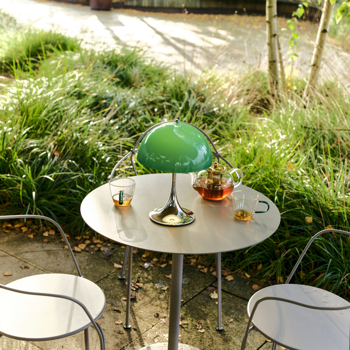 Das Lichtkonzept der Panthella Portable bietet eine blendfreie, angenehm weiche Beleuchtung: Die opaken Schirme lenken das Licht nach unten und schaffen dank der weiß lackierten Innenseite sowie der Reflexion am trompetenförmigen Stab eine behagliche Atmosphäre. Opale Schirme hingegen lassen sanftes Licht durchscheinen und sorgen für ein dezentes, stimmungsvolles Ambiente. Die LED-Technologie mit 2700 Kelvin und 2,5 Watt garantiert dabei eine moderne, energieeffiziente Beleuchtung.